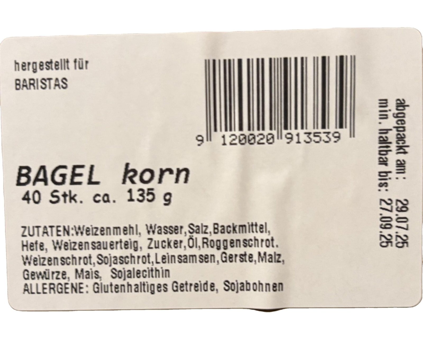 Barista´s Korn Bagels 40 Stk. á 135g/ Karton, vegan
