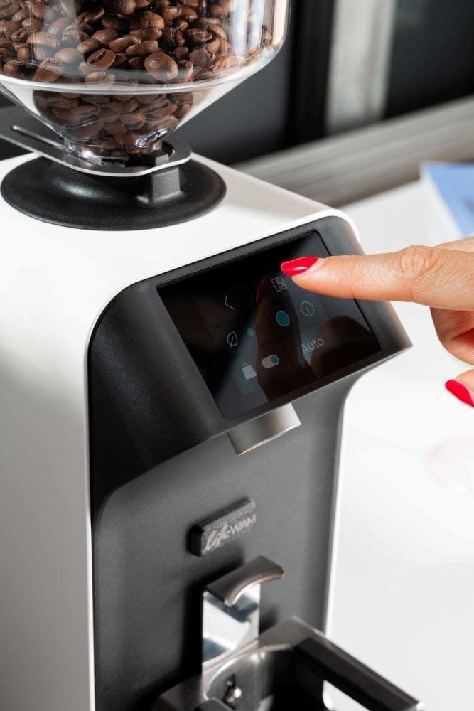 Die Ceado Life WAM arbeitet mit einer 50mm „blind flat burrs“ ohne Schrauben sowie dem Weight Based Dose Management (WAM), das eine Dosierung nach Gewicht ermöglicht. Dank der integrierten Waage im Mahlwerk kann jede Portion exakt nach Gramm eingestellt und reproduziert werden – ein entscheidender Vorteil für Home Baristas, die Wert auf Konsistenz und Perfektion legen. Die digitale Dosierung erfolgt über das 2,4 Zoll große Farb-Touchdisplay, das eine intuitive Auswahl zwischen Mahlung nach Zeit (Sekunden) oder Gewicht (Gramm) erlaubt.