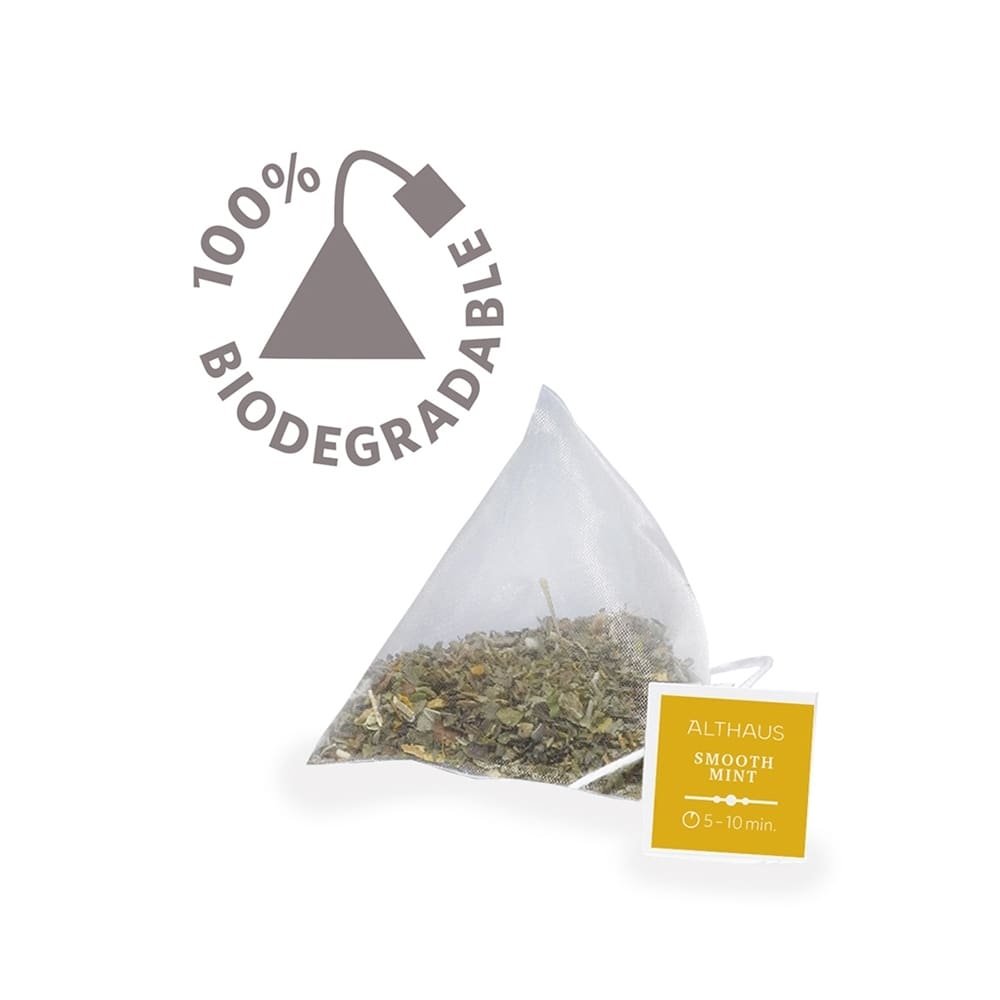 Der Althaus Smooth Mint zeichnet sich durch eine besonders weiche, ausgewogene Minznote aus, die weder scharf noch aufdringlich ist. Die Qualität entsteht durch die Kombination ganzer, sorgfältig getrockneter Minzblätter aus kontrollierten Plantagen und die präzise Abstimmung der Sorten. Das Ergebnis ist ein runder, langanhaltender Aufguss, der sich hervorragend für anspruchsvolle Coffeeshop‑Karten eignet, weil er sowohl pur als auch in Milchvarianten überzeugt.