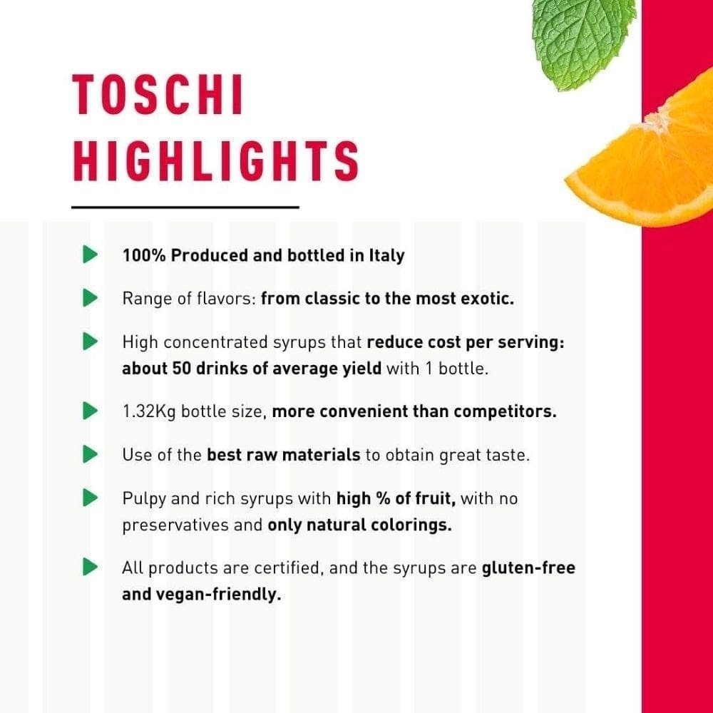 Der Toschi Lavender Syrup bringt mediterrane Eleganz in jedes Glas. Mit seinem intensiven Lavendelprofil lassen sich Cocktails, Spritz-Varianten oder kreative Desserts verfeinern.