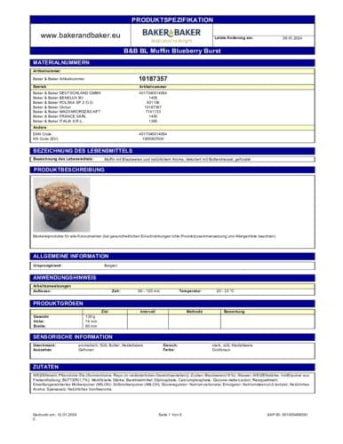 Zutaten: WEIZENmehl; Pflanzliche Öle (Sonnenblume, Raps (in veränderlichen Gewichtsanteilen)); Zucker; Blaubeeren(15%); Wasser; WEIZENstärke; VollEIpulver aus Freilandhaltung; BUTTER(1,7%); Modifizierte Stärke; Backtriebmittel: Diphosphate, Calciumphosphate, Glucono-delta-Lacton; Reisquellmehl; Eiweißangereichertes Molkenpulver (MILCH); Süßmolkenpulver (MILCH); Säureregulator: Natriumcarbonate; Emulgator: Natriumstearoyl-2-lactylat; Natürliches Aroma; Speisesalz; Natürliches Vanillearoma.