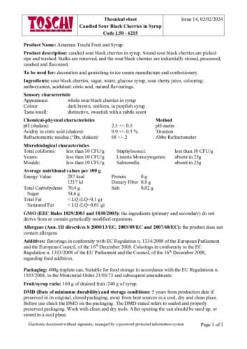 • Hauptzutaten: 16/18 Amarena-Kirschen, Zucker, Wasser, Kirschensaft